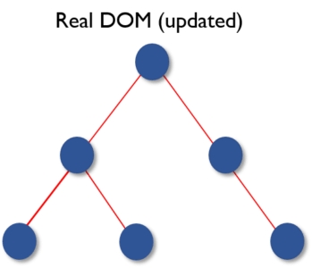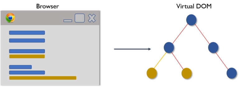 The virtual DOM (VDOM) is an in-memory representation of Real DOM. The representation of a UI is kept in memory and synced with the “real” DOM. It’s a step that happens between the render function being called and the displaying of elements on the screen. .Whenever any underlying data changes, the entire UI is re-rendered in Virtual DOM representation.Then the difference between the previous DOM representation and the new one is calculated.Once the calculations are done, the real DOM will be updated with only the things that have actually changed.