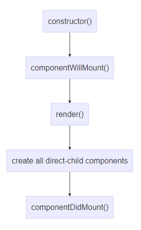 The first cycle is the creation for component, which usually happens the first time a component is encountered in the parsed JSX tree: