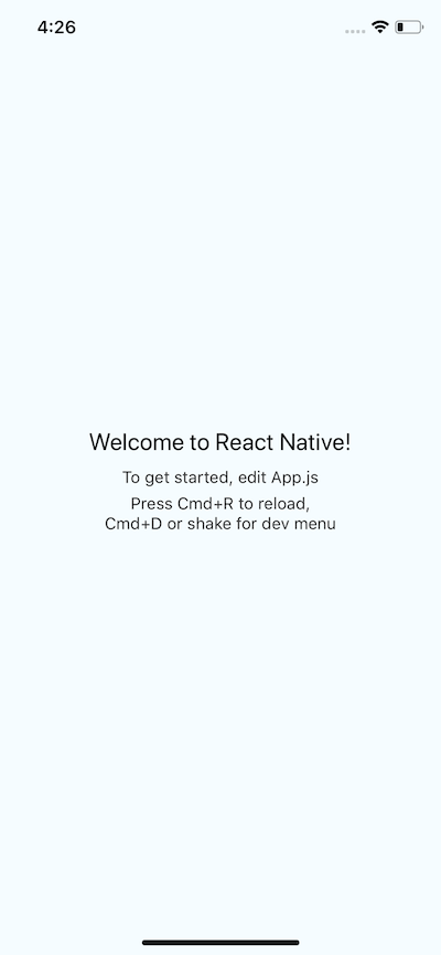 This command builds your app and starts it on iOS simulator. This process consumes some good amount of time when building the necessary iOS files for the first time for any React Native app. It will also open up a simulator device for you like below when the process is done.