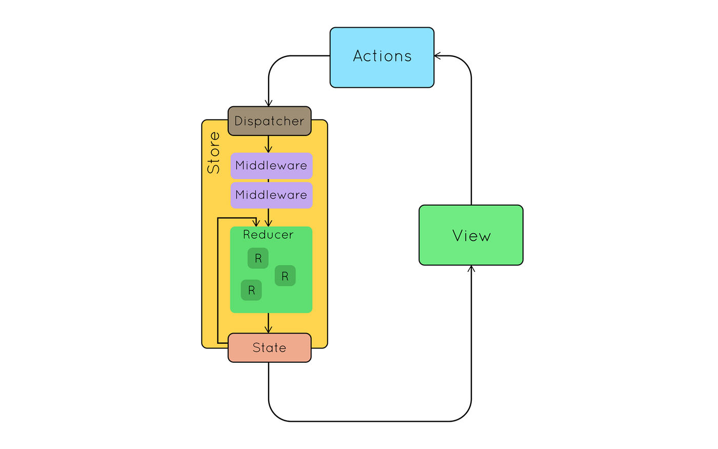 Actually, the “top-level components” I’ve mentioned are officially called Smart Components in Redux, and the “sub-components” are called DumbComponents. The connect function in React-Redux hooks together the Redux states and Smart Components. This is how it look like View is all about our react component and we have this redux store on which we are triggering actions and getting state object from there
